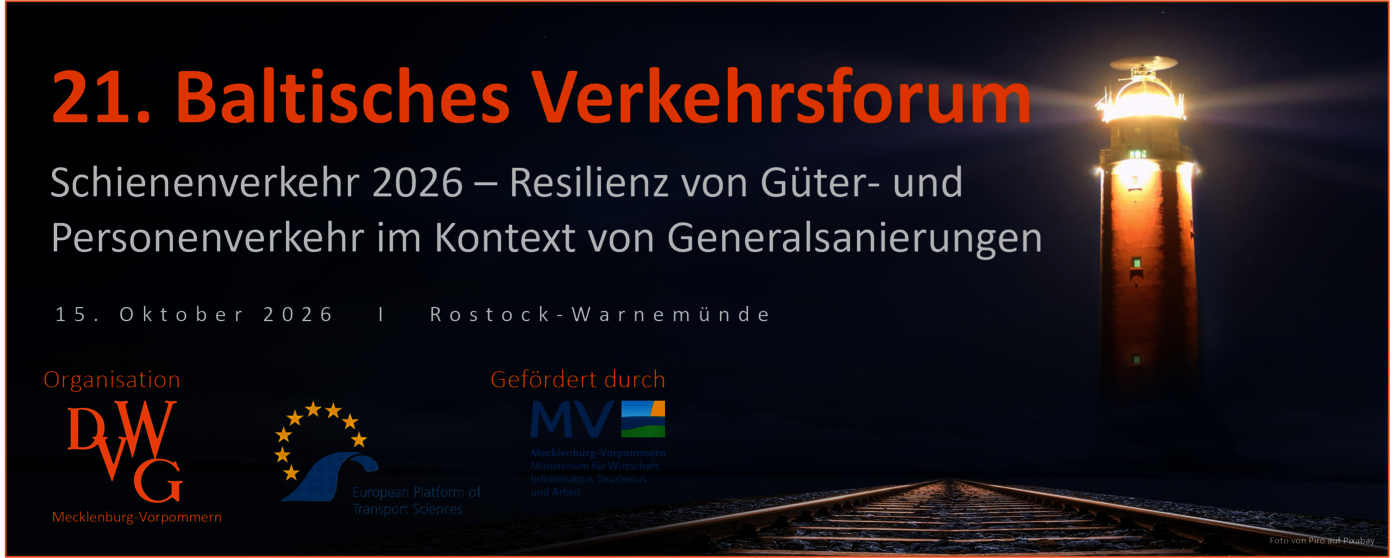 Die Veranstaltung wird von der DVWG Mecklenburg-Vorpommern gemeinsam mit der European Platform of Transport Sciences (EPTS) organisiert und bringt erneut hochrangige Expertinnen und Experten aus ganz Europa im wunderschönen Ostseeraum zusammen.